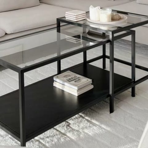 Säljer 2 st små fina bord. Vita med metallben, mått lilla bordet 45x45 det större 49x49 cm.