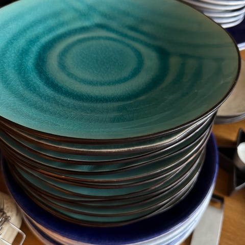 4st från en senare produktion varav en av tallrikarna har fått en defekt (se bild på ”spricka”, känns inte när du drar fingret över den).