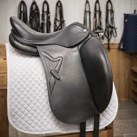 Svart Erreplus Freestyle dressyrsadel 17-31 i nyskick då den är sparsamt använd pga skadad häst. Genomgången av Sadelprovare utan anmärkning. Omvärmningsbar bom och justerbar stoppning.