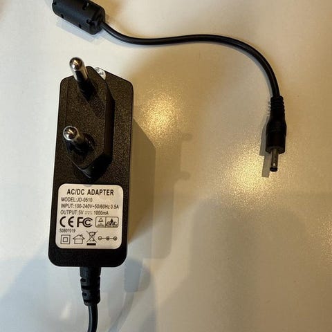 Utgångsspänningen är 9V DC med en maximal effekt på 7,5 W.