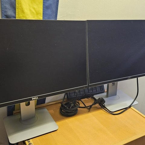 HP E24m G4 FHD ca tre år gammal men fungerar perfekt.
