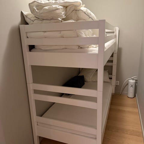 Monika våningssäng har en robust konstruktion och alla delar är tillverkade av massiv trä. Sängen är målad med godkänd färg; en naturlig ekologisk färg som är fri från kemikalier.
