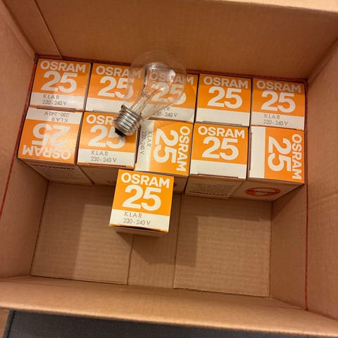 Normallampa Lågspänning 48V 60W med E27-sockel. Helt nya lampor. Det finns 18 lampor.