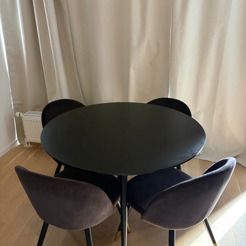 På bilderna från Mio är det marmorskiva på detta bord trä/laminat.