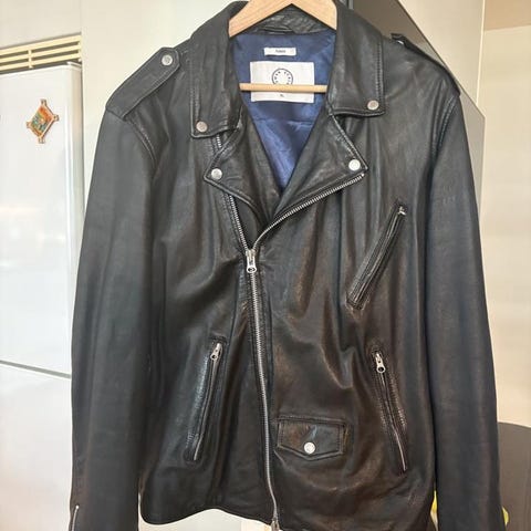 Unisex Jacka i svart äkta mocka/läder från human scales. Använd en gång och har sedan dess hängt i garderoben. Synd då den förtjänar att användas. Fodrad insida.