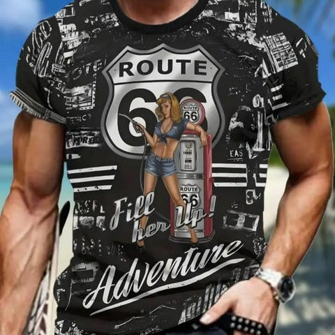 T-shirt Route 66 Diner Albuquerque. Grafisk tryck. 100% Polyester. Lätt stretch. Reguljär passform.