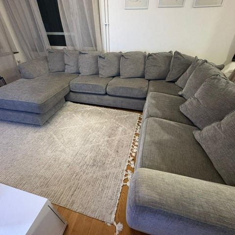 Hej jag säljer soffa pga det är för stor för mig. Det är i bra sick Jag byt ben mot hjul, för att göra det lättare att flytta soffan . Vid snabb affär pris kan diskuteras