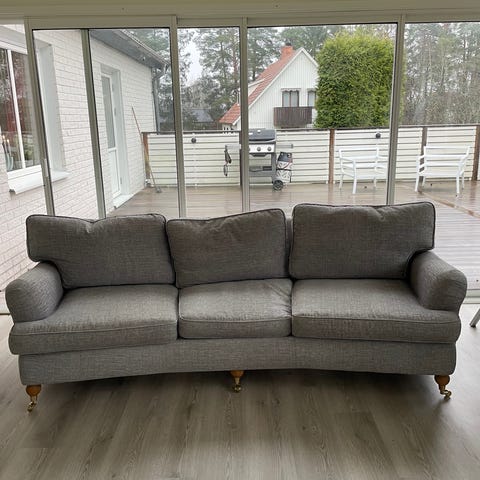 Tidlös design med arbetade detaljer som kantband runt armstöden och träben. Benen lämnar utrymme under soffan för att skapa ett luftigt utseende och underlätta för dig när du städar. Sittkuddarnas kärna av pocketresårer ger en jämn komfort över hela sittytan och ger din kropp bra stöd. Pocketresårer är en slitstark lösning som gör att soffan behåller både sin form och komfort under många år. Kombinationen av sitthöjd, sittdjup och ryggkuddar ger dig bra stöd och gör att du får en mer upprätt sittposition i soffan. Klädseln är lätt att hålla ren eftersom den är avtagbar och kan tvättas i maskin. Kan ev levereras KAK område