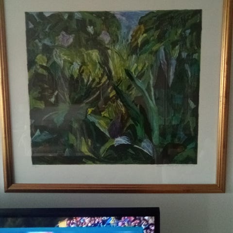 Äkta oljemålning på en svart mocka duk.