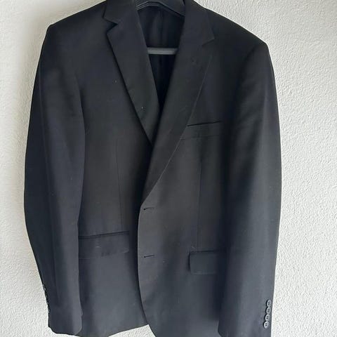Kavaj (endast) i filt-tyg och dubbelknäppning. Mycket fina slag, men något oklart hur gammal eller exakt storlek. 48 bygger på en uppskattning. Kan mätas upp om du inte vill svinga förbi och prova. Varm och skön.