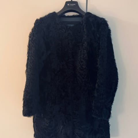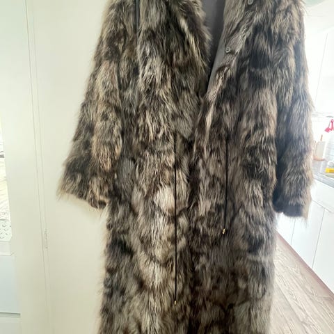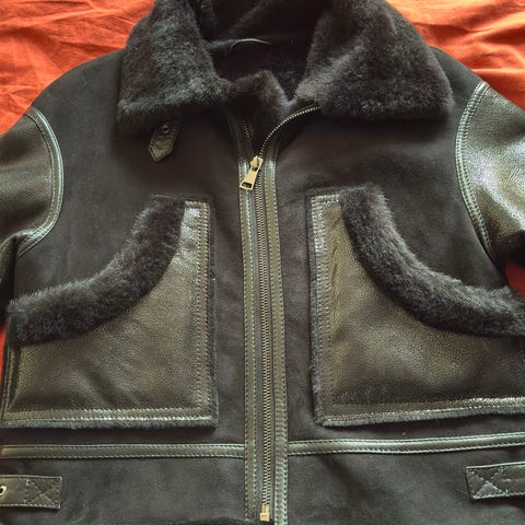 Ravn pälsjacka, äkta med läderdetaljer.