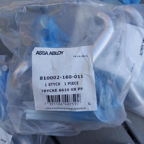 Det finns mässingskrokar med skruv, 3 st dörrhandtag + några lösa delar