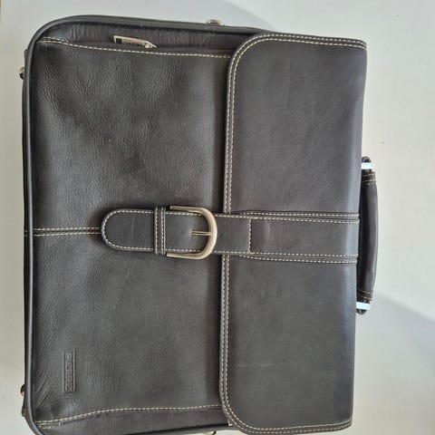 Skinnväska med axelrem och handtag. Flera fack. . Mått : bredd 40 cm x höjd 26 cm.