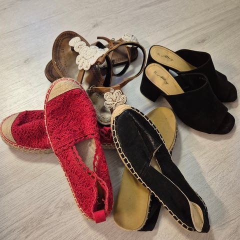 2. Bekväma och stilrena svarta slip-in skor från Dasia i storlek 37. Perfekt för avslappnade dagar hemma eller snabba ärenden. Den enkla designen gör dem lätta att matcha med olika outfits. Pris 80 SEK.