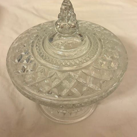 Vintage! Glimma Glasbruk - vacker ask med lock, opalin