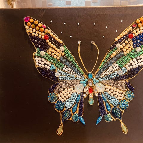Retro Broderad Tavla- Fjäril