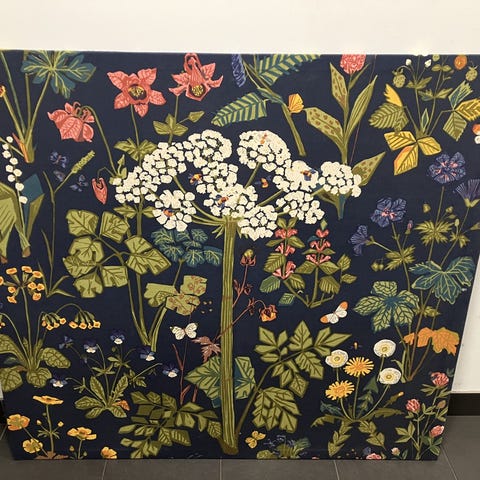 En charmig broderad tavla med ett retro fjärilsmotiv. Tavlan har en varm färgskala och detaljerade broderier som ger den en unik och dekorativ känsla. Perfekt för att addera en vintage touch till ditt hem.