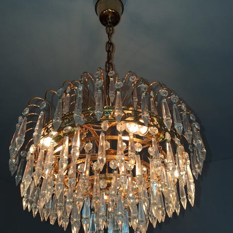 Höjden från taket till nedersta kristallprisma - 69 cm, bredden- 58 cm.