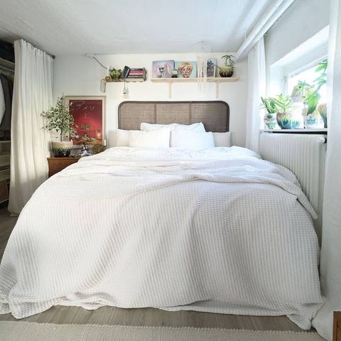 Paket med sängkläder, kuddar, täcken och madrasskydd på köpet