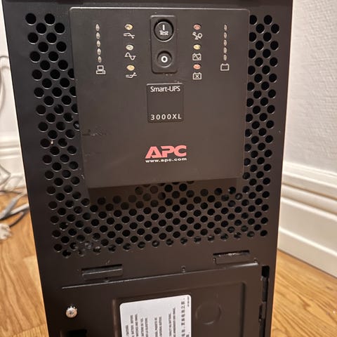APC Smart-UPS 2200 avbrottsfri strömförsörjning i svart utförande. UPS:en är avsedd för att ge reservkraft och överspänningsskydd till exempelvis servrar, nätverksutrustning och andra känsliga elektroniska enheter. Modellen har frontpanel med display för statusinformation och knappar för grundläggande inställningar. Enheten är golv- eller tornmonterad och ansluts mellan vägguttag och utrustning som ska skyddas. Lämplig i miljöer där stabil strömförsörjning är viktig, som kontor, mindre serverrum eller arbetsstationer.