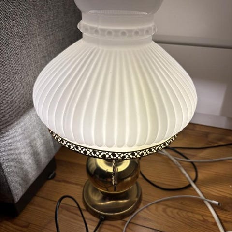 Äldre lampkupa till utebelysning. 20cm diam, 8,5 cm fäste. Inneslutna bubblor i glaset.