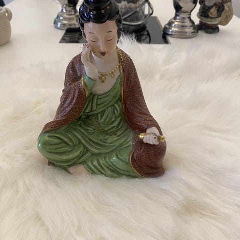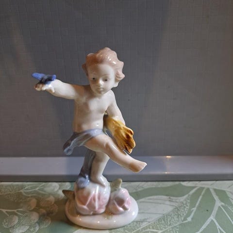 I form av en pyramid av stora ägg (kalkonägg?) med inslag av oliver och broccoli. Vintage, förmodligen från Italien. Stor och dekorativ. Har ett par anmärkningar på 2 av äggen enligt bilder, inget som stört mig nämnvärt. Se bilder noga för egen bedömning av skick. Ca 25 cm hög, ca 18 cm diameter på bredaste stället. Ovanlig!