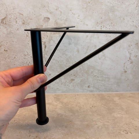 Stabilt möbelben i solid rå mässing med stödvinkel i guldlackad stål. Monteras på IKEAs Bestå eller annan möbler med medföljande M8 maskinskruv eller träskruv. Justerbar ställfot. Totalhöjd kan varieras mellan 20,5-22cm.