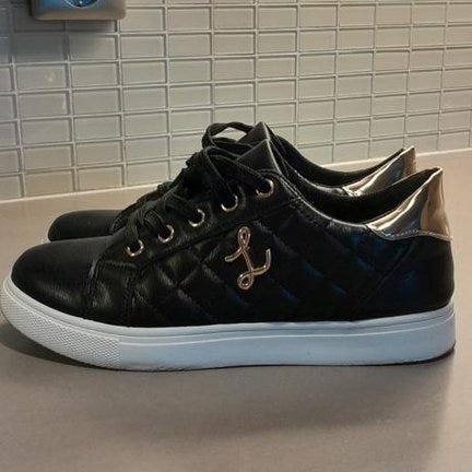 Sneakers från Zara i vitt och gröna detaljer. Ser ut som skinn men är veganska. Nya och oanvända.