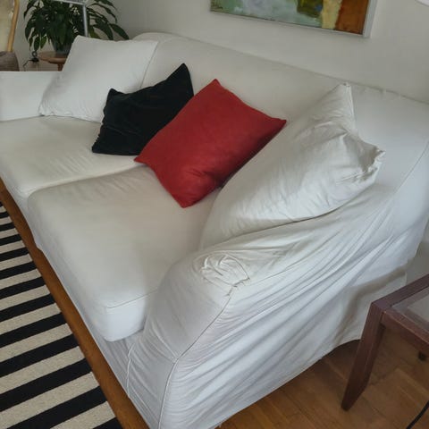 2 st KLIPPAN soffor som stått i djur, barn och rökfritt hem säljes pga flytt. Inga skador, hela och rena. Överdrag i vitt tyg medföljer.