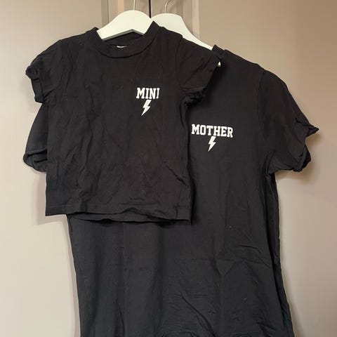 Mörkblå t-shirt från Gazzi i 100% bomull. Framsidan har ett tryck med spiraler, prickar och texten 'Roses' i vitt och ljusblått. Klassisk passform med rund hals och korta ärmar.