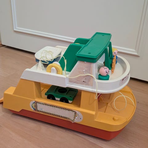 Leksaksbåt med batteridrivna utombordare från 1970 talet