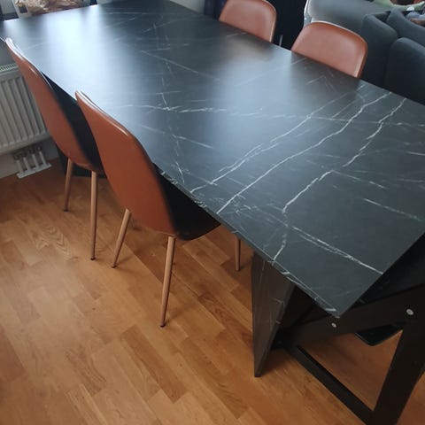 Säljer nu mitt köksbord. Skivan är av marmor med undersida av trä.