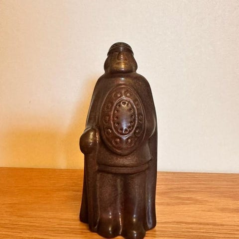 Figurin i glaserat stengods, en riktig tant med väska från JIE Keramik, design av Kirsten L Eberlein. Vikt 125 gram, höjd 12 cm, ca 5 cm bred.