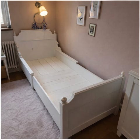 Mått: Total höjd ca 80cm , höjd till madrass ca 53cm, längd ca 103cm, bredd ca 60cm.