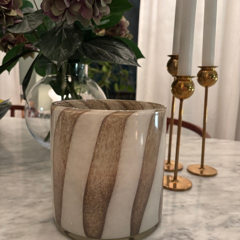 Föremålet på bilden är en ljusplatta från Wira Bruk, avsedd för värmeljus eller ett litet värmeljus. Kostar på Wira Bruk för ca 260 kr. Den är formad som ett stiliserat löv.