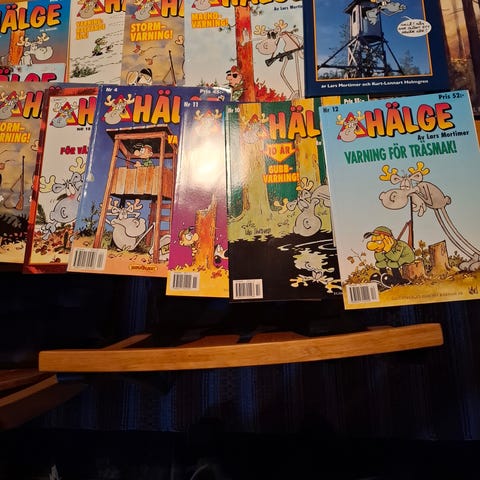6 st inbundna och 8 st häftade samt två Hälge-tidningar. Inget klotter och inga hundöron, den perfekta julklappen till morfar eller farfar.