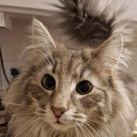Amor (hane, NFO ns 03 22, svartsilver tabby bicolour) vill ha ett kärleksfullt hem! Han är den som är kvar från en kull på fem syskon.