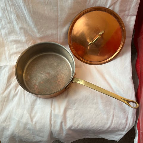 Stekpanna i koppar märke Dorre som vanligtvis används av kockar .