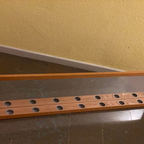 Säljer ett vackert set bestående av en specialspegel med mörk träram, en dekorativ väggmonterad trähylla och matchande ljushållare med röda glas. Tillsammans skapar de en varm och hemtrevlig känsla, perfekt för hall, vardagsrum eller sovrum. Allt i fint skick och säljs som paket.