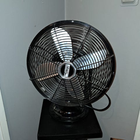 Retro golvfläkt på fot i krom Tre hastigheter roterande.