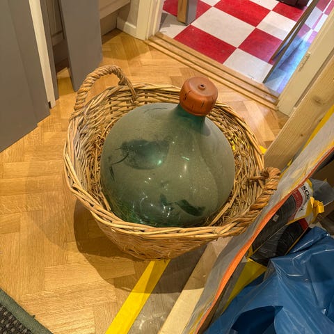 Damejeanne i korg