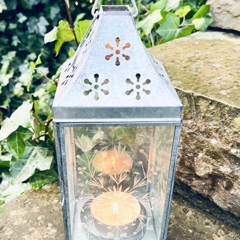Fynd! Så fin Ljuslykta / Stormlykta med slipat mönster. Nyskick.