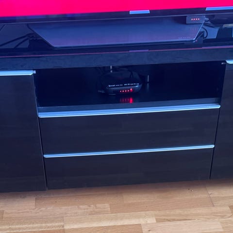 Svart TV-bänk från IKEA, Brimnes. Gott skick men några år gammal. Rymlig förvaring och praktisk. Få repor och stötar men inget är superuppenbart förrän man tittar riktigt noga (kolla bilderna).