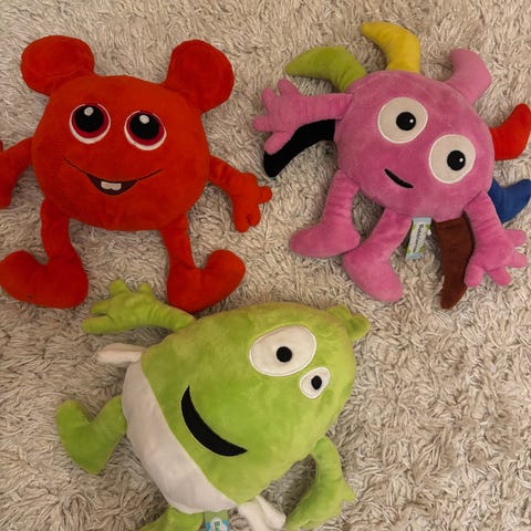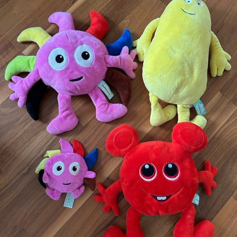 Babblarna 2 st.Dadda, 1 Bobbo, 1 Diddi, 1 Doddo gosedjur och 2 Paw Patrol kuddar.