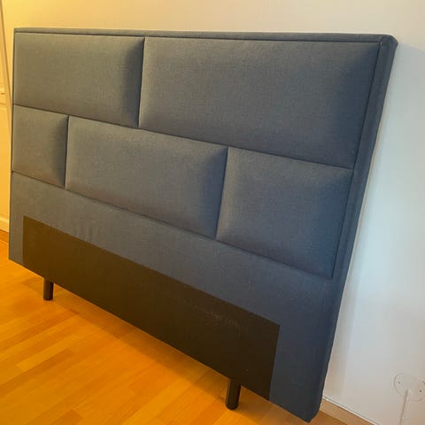 Sänggaveln är från Mio, knappad utseende och färgen heter mullvad (beige).