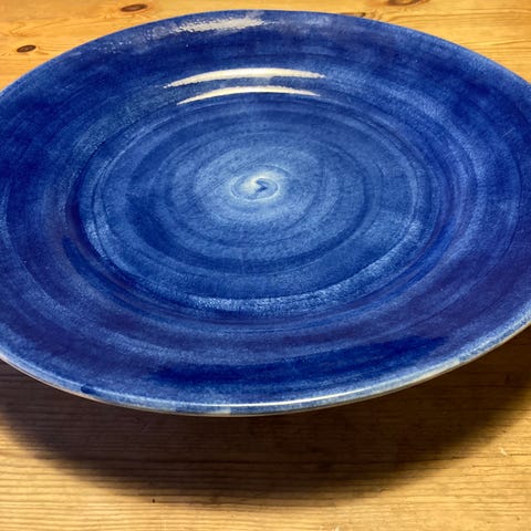 Vackert fat i glas med fördjupning som fungerar både som skål eller fat, 28 cm i diameter. Handblåst från svenskt glasbruk.