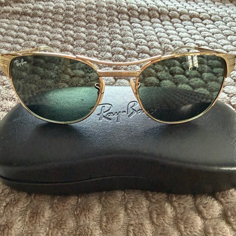 Ett par coola snygga solglasögon från Ray-Ban. Det är ett par brunt på guld med brun Gradient linser. Det är en ultralätt, minimalistisk design. Det är unisex modell och dem är i mycket fint skick!