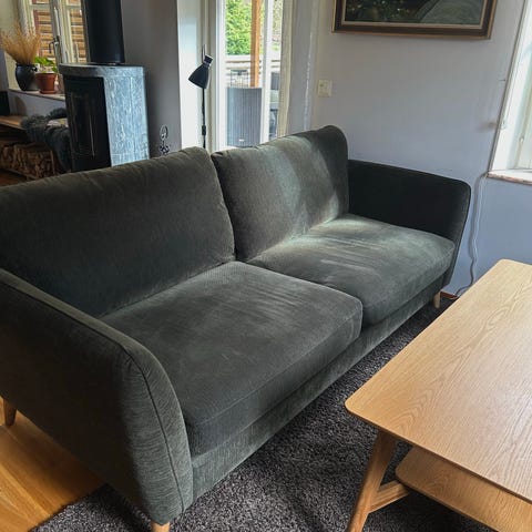 Köpt hösten 2020. Gott skick och fräsch. Inga fläckar eller skador. Klädsel på sittdynor och kuddar är tvättbar. Djur- och rökfritt hem.