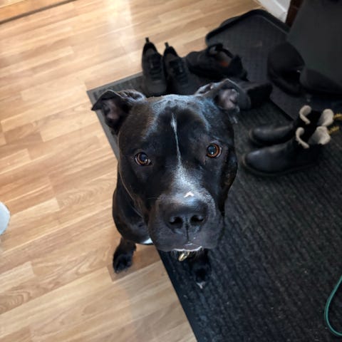 Hon har en naturligt vaksam sida och behöver därför en ägare som är trygg och van vid lite kraftigare raser – någon som kan ge henne tydliga rutiner, stabilitet och kärlek. Med rätt person är hon världens finaste och väldigt lätt att tycka om.