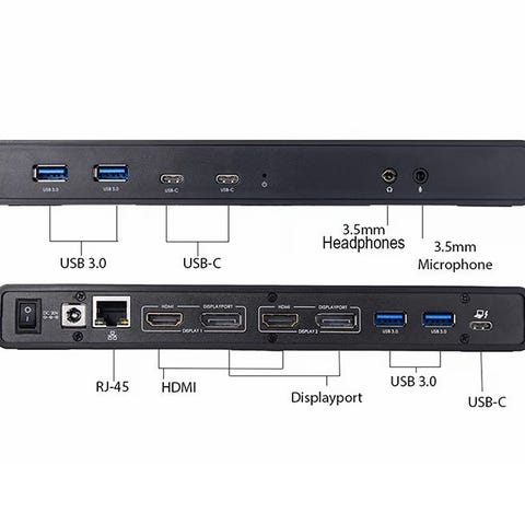 Är en universal dockningsstation för bärbara datorer utrustad med USB-C-anslutning. Dockningsstationen förvandlar din bärbara dator till en kraftfull arbetsstation var du än befinner dig. Dockningsstationen är kompakt och tar upp minimalt med yta på skrivbordet samtidigt som den har alla portar du kan tänkas behöva för att arbeta effektivt.
